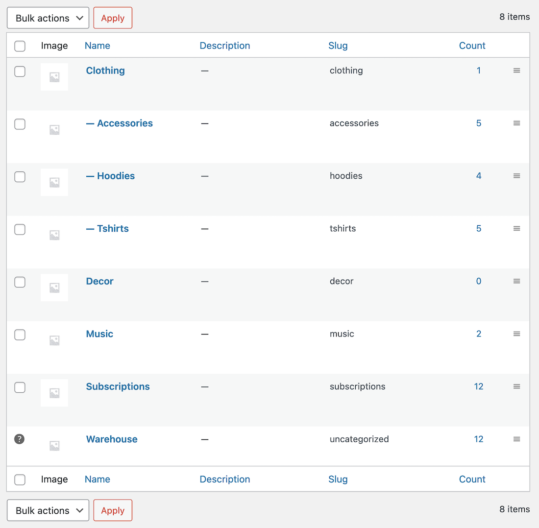 For this example we’ll use the WooCommerce demo data that includes products from multiple categories.