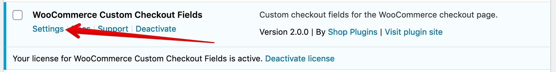 1. From the plugins page click on the Settings link under WooCommerce Custom checkout Fields