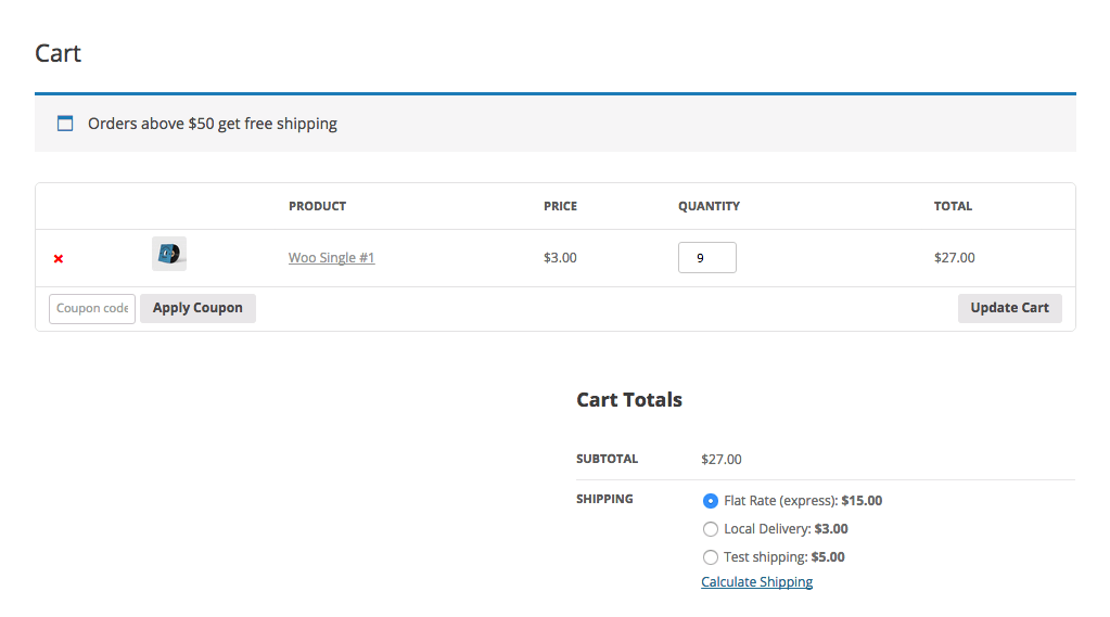 Most customers will buy an extra item to get past the $50 threshold just to save a couple bucks on shipping. Even if the store has a graphic explaining the Free Shipping threshold, an additional notification is a great idea!
