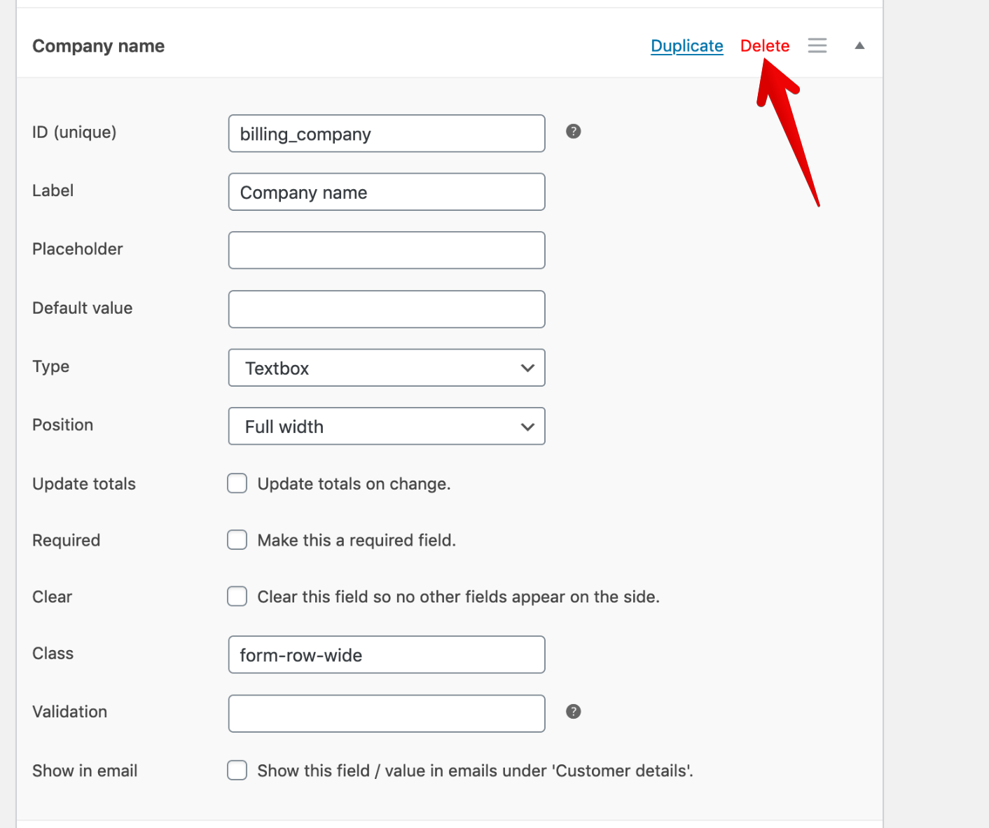 If your store doesn’t need a field like the Company field you can press Delete on that field to remove it.