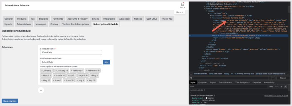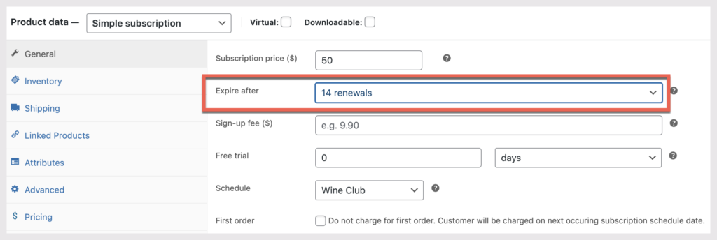 Keep in mind if there’s a specific end date for the subscription, an expiration date will need to be added at the product level. If no expiration date is set, after completing all renewal dates the subscription will commence again on the first date of your schedule of the following year.