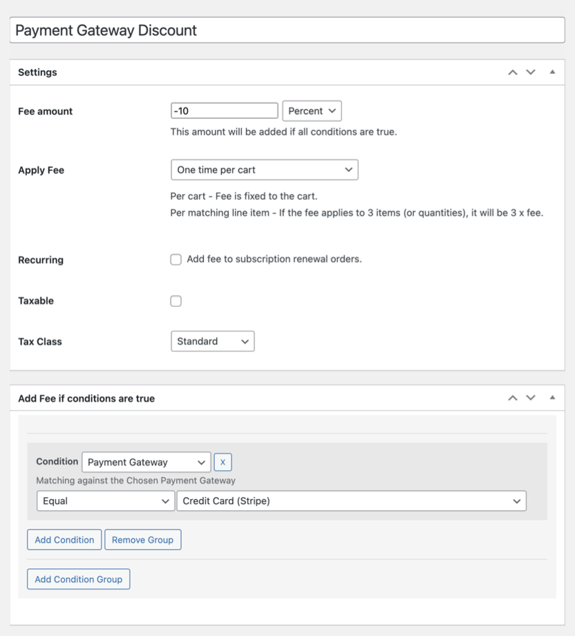 With this extension store owners have full control over fixed fees or percentage-based amounts on the cart. Set fee rules for the payment gateway, order volume, quantity, user roles, categories, products, and even more. Use the same conditions to create a cart discount.