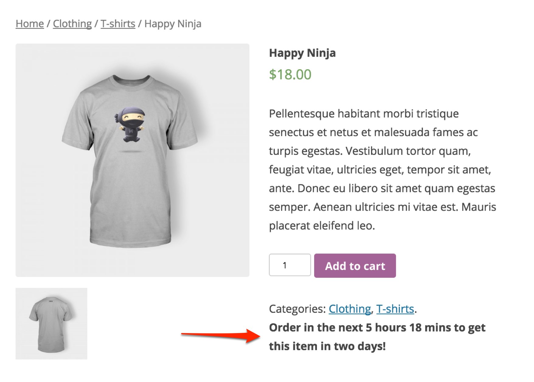 Now you’re wondering how else you can entice customers to add the item to their cart. One way to motivate shoppers is to let them know exactly when they will receive their product if they order it now.
