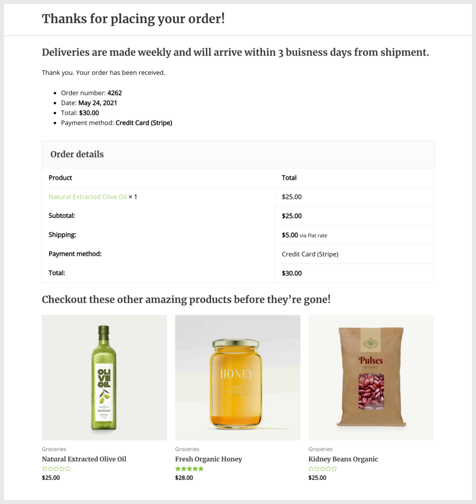 Interchanging product attributes makes it easy to customize your thank you page. The same can be done on any page of your website. You can even combine more than one shortcode to customize the user experience even further.