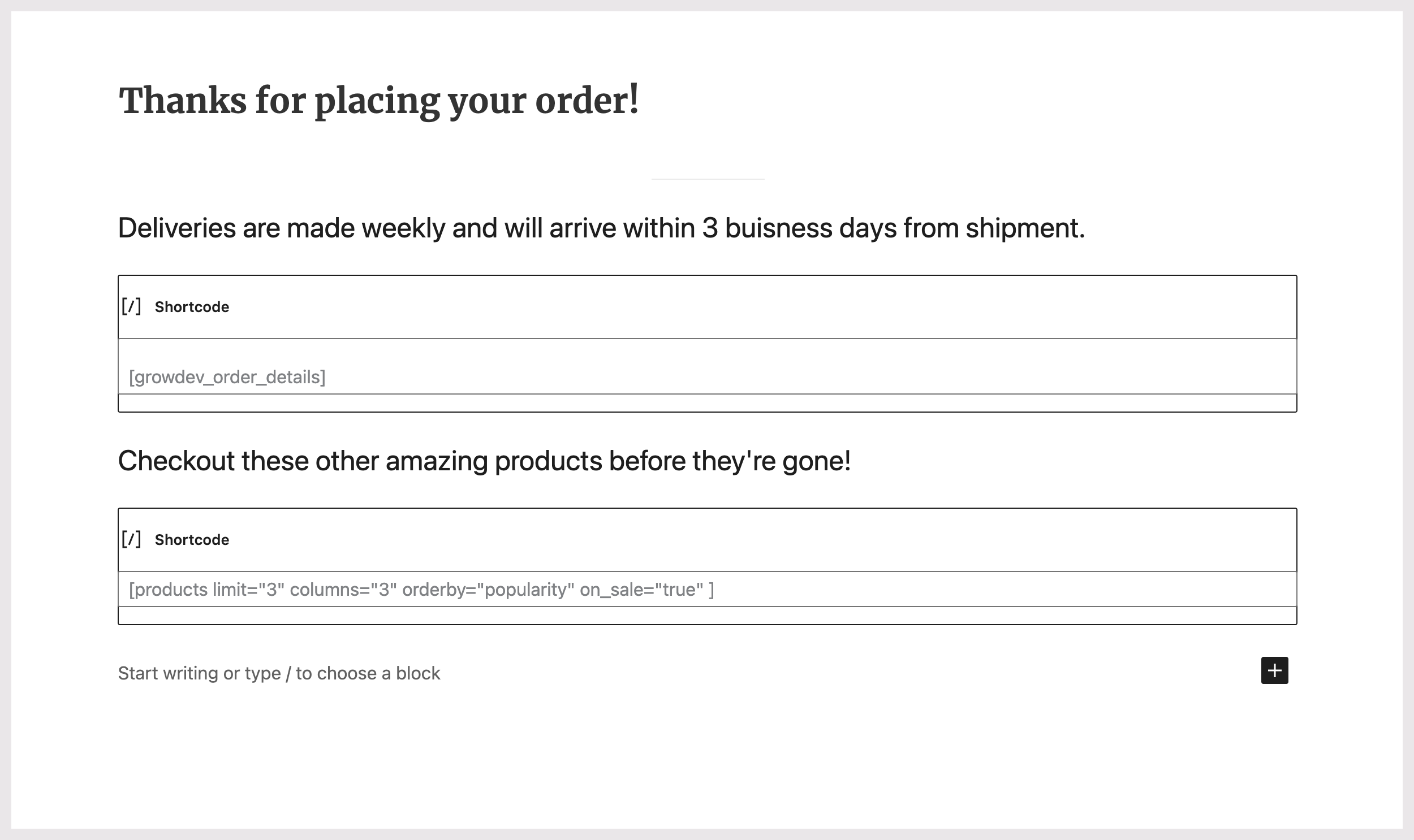 Add WooCommerce Products Shortcode to Your Thank You Page